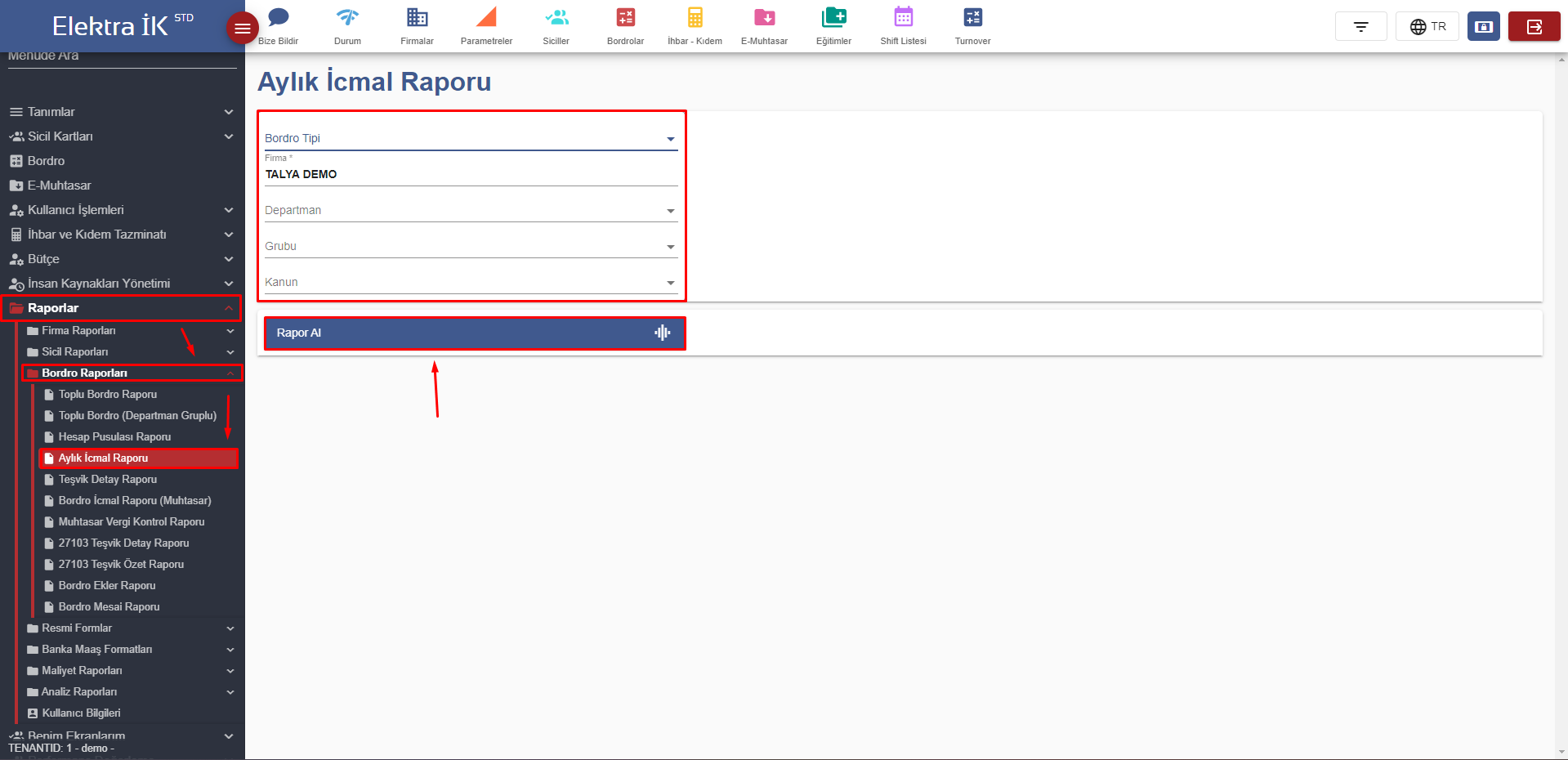 # 10.3.4 Aylık İcmal Raporu